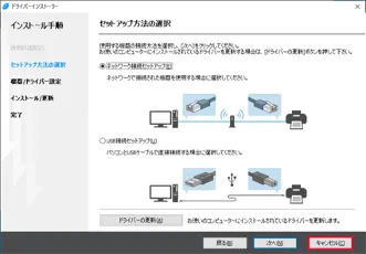 - 「セットアップ方法の選択」画面が表示されますので,「キャンセル」を押してください.