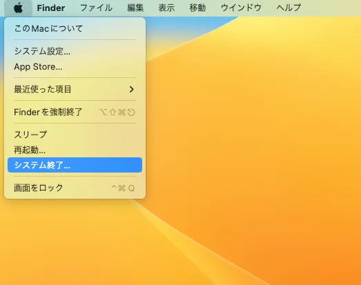 - 画面左上のアップルマークをクリックし,「再起動」もしくは「システム終了」をクリックしてください.