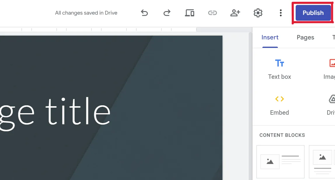In the editing screen of the site you want to publish, click “Publish” in the upper right.
