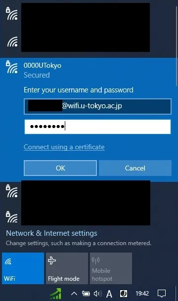 PasswordEnter the password for the UTokyo Wi-Fi.