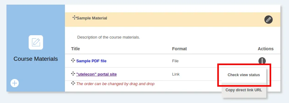 The course instructors and TAs can check which enrolled students have viewed the course materials and when they did it. The view status can be checked on UTOL. It can also be downloaded as an Excel file format (a password must be set for the file).