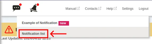 When there are unread information or unread updates, the icon on the bar on the upper screen will have a red circled attached. When the icon is pressed, a box will open, and the unread notifications will appear.