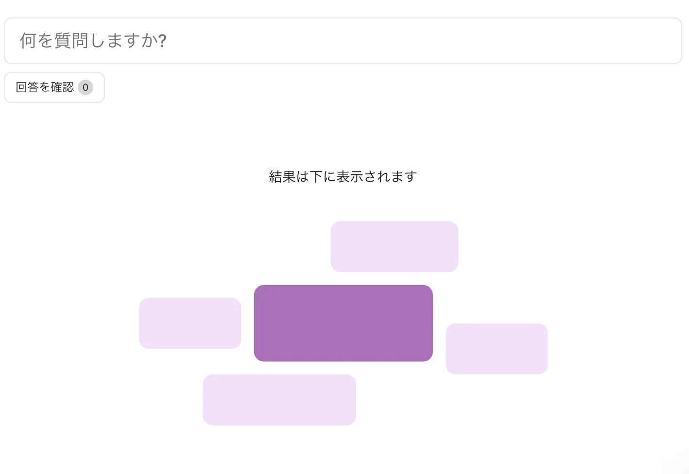 - ワードクラウドー参加者の回答が「クラウド」として可視化される質問を設定する(参加者は短文形式で答える)